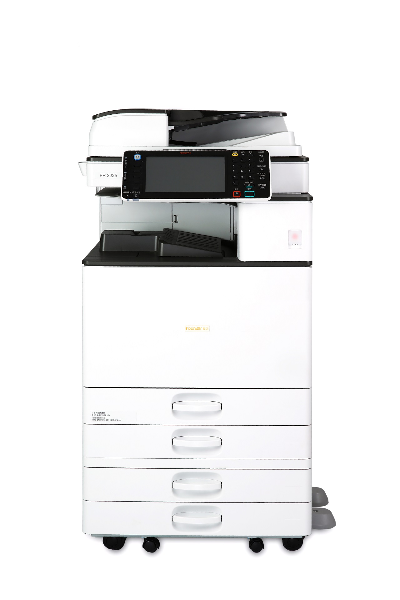 ![]() ![]() ![]() ![]() 产品标题:方正FR3225黑白激光数码复印机 产品报价:¥50880 产品特点: 1.产品简介: 方正FR3225黑白激光数码复印机,是一款中高速复合机,输出速度高达25页每分钟,融合了日常办公必须的复印、打印、扫描以及文件管理功能于一体,同时配备网络功能,可以通过网络模块实现网络共享功能,该款产品适合于10-50人的工作组日常办公使用,可选配三四纸盒,大容量纸盒,小册子装订器等配件,让办公变的更高效。 方正FR3225还可内嵌方正安全加密解决方案,能实现刷卡复印打印,漫游打印,加密打印,防复印等功能,而且可以在打印文档中加入暗水印,做到人眼无法分辨加密文档,文档一旦泄密,可根据文档中的加密信息,追溯到泄密者,方正软硬件相结合的安全加密文印解决方案让办公更安全。 2.产品特点: 2.1.高效高品质:方正FR3225数码复合机输出速度高达25页每分钟,14秒极速预热时间,首页输出时间低至4秒,大大提高了用户的办公效率,打印分辨率高达1200dpi,高品质的输出再现各类文档中的图像和文字,同时随机赠送方正123款兰亭字库,打印各种精美字体,尽显汉字魅力。 2.2.人性化设计:9英寸电容触摸大屏,程序选择一目了然,使操作界面更加简单方便,帮助您轻易上手,轻松实现复印、打印、扫描、文件管理功能,您还可以根据自己的使用习惯定制自己的操作界面,体现极致人性化。 2.3.节能环保:方正FR3225数码复合机秉承方正一贯节能环保理念,使用定影带替代定影热辊,导热更有效,只需利用极少的电力即可加热定影带,不仅减少了电力消耗,还加快了预热恢复时间,另外,环保设计实现了低臭氧,低粉尘,低噪音,在节约成本的同时营造了一个令人愉悦的工作环境。 2.4.功能齐全:方正FR3225数码复合机,充分考虑到日常办公需求,集打印,复印,扫描,网络于一体;标配双面打印器,自动双面打印,为您节省纸张费用,同时标配双面进纸器,可以实现双面复印功能;大容量双纸盒,可以实现电子分页和旋转分页,还具有多页合一,小册子打印,SD卡打印,U盘打印等实用性功能。 中国环境标志的提示