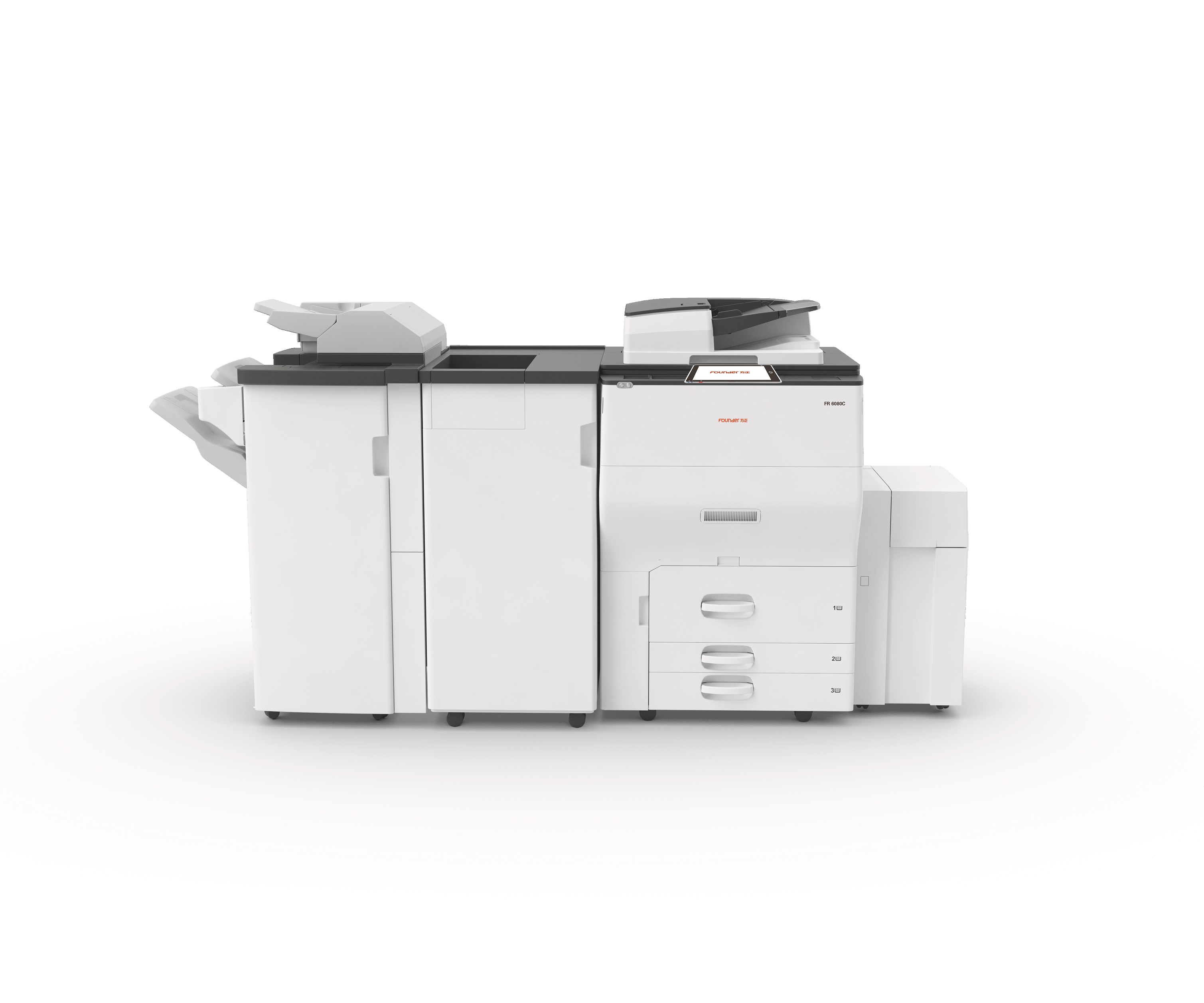 2.1高品质:方正一直在不懈努力地为国人提供高品质产品,方正复印机也致力于提高国人办公品质,方正FR6230C采用10.1寸高品质智能触控屏,具有iPAD同样的操控性,打印分辨率也高达1200dpi*4800dpi,实现高精细画质打印,打印字体边缘光滑,内容清晰美观; 2.2人性化设计:方正FR6080C采用人体靠近红外传感器,当用户靠近机器,机器通过感知温度变化,自动从睡眠模式恢复,只需0.5秒快速进入运行阶段,当用户走出机器特定范围内,机器自动进入睡眠模式,而且该款机器还可以设定上下班时间自动开关机,既节能又具有人性化;