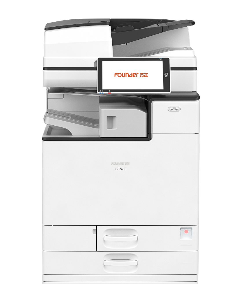 8身份认证功能:方正G6245C标配刷卡认证、安全打印功能,用户使用IC卡进行个人认证,管理员可设置用户使用打印/复印/扫描的权限,限制用户彩色输出等,最多可查看2000条用户设备使用记录,无需联网安装额外文印管控软件,即可实现设备管控,极大提高了设备的安全性,降低泄密风险。 9兼容性强:方正是国内知名IT厂家,坚持走自主创新道路,积极参与国产化生态建设,方正G6245C作为重要的输入输出类产品,其打印扫描驱动均完成与国产龙芯、飞腾、鲲鹏等不同CPU平台的适配认证,并兼容麒麟、统信等不同版本的国产操作系统及国产平台下的不同应用软件,具备强大的兼容性。 10扩展性强:方正G6245C彩色数码复印机,充分考虑到日常办公需求,集打印,复印,扫描,网络,文件管理功能于一体;可选配小册子装订器,实现角钉,平钉,骑马钉的装订功能,另外还可以选配无针装订器,实现无针安全装订。